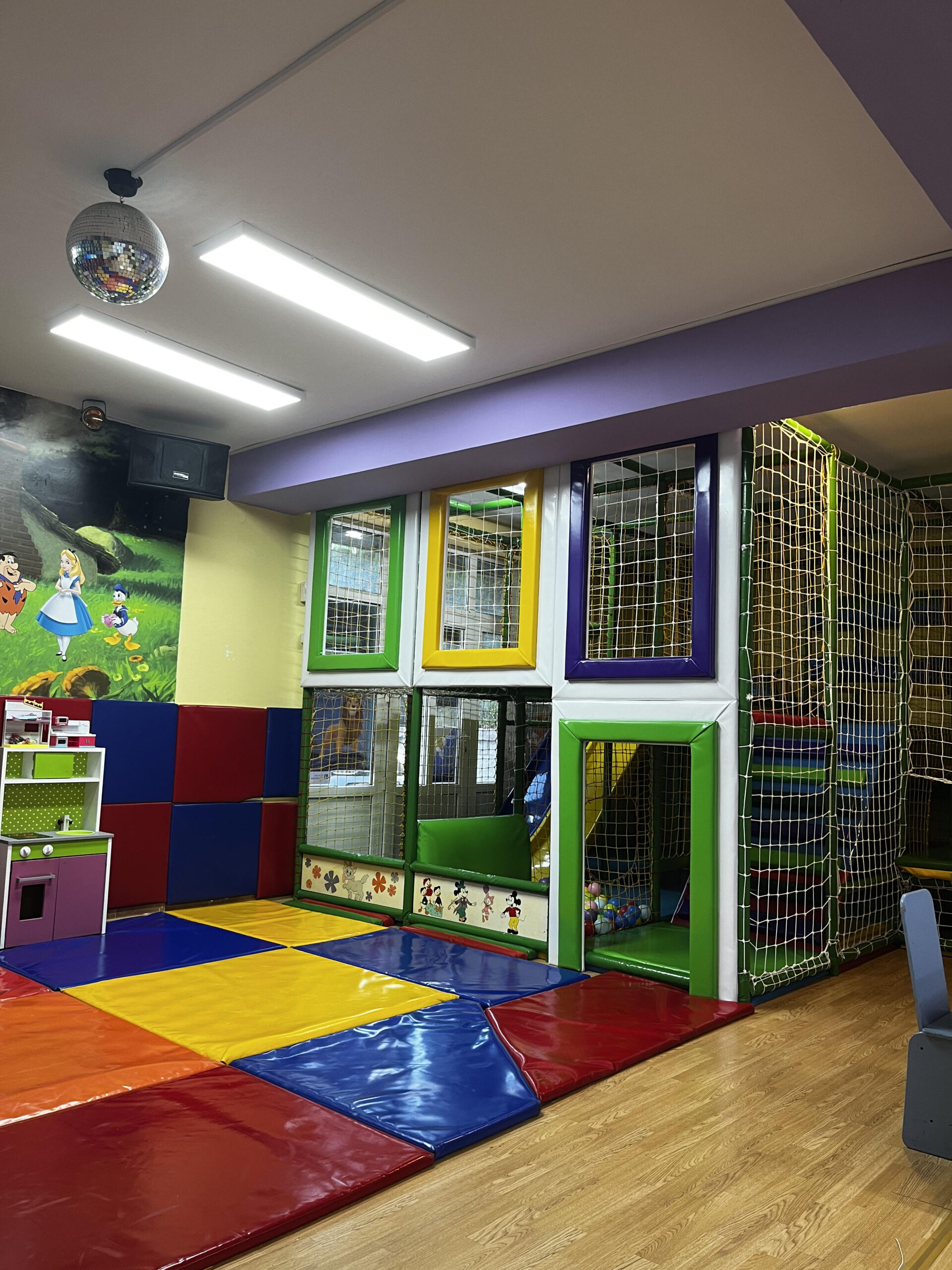 Prostor se sastoji od prostora za odrasle, lavirinta za decu, bazen sa lopticama, trambolinu, diskoteke, sto za stoni fudbal i bašte za odrasle (pušački deo).Igraonica je velićine oko 130m,i ima mogućnost prijema 35 odraslih i 25 dece.